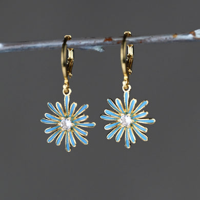 Beautiful Enamel Flower w/ Inset Crystal & Golden Huggie : Turquoise