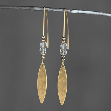 Hammered Brass Marquise Long Wire & Fluorite Earrings
