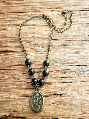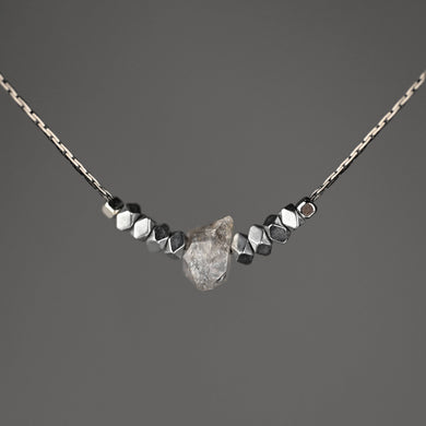 Herkimer Diamond and Hematite Short Necklace (Gunmetal)