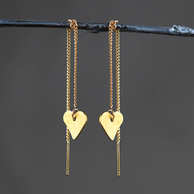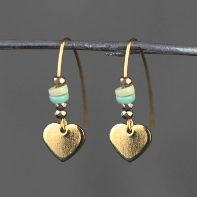 Hammered Brass Heart w/ Long Wire & Turquoise Jasper Earring