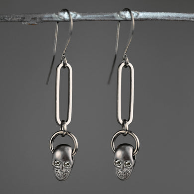 Hematite Skulls w/ Crystal Eyes & Oval Earrings (Gunmetal)