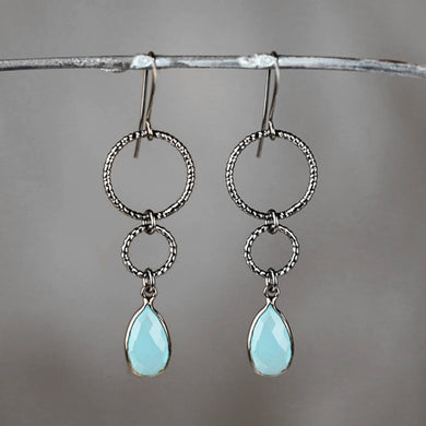 Gunmetal Small Circle Earrings with Stone Drop Earrings: London Blue