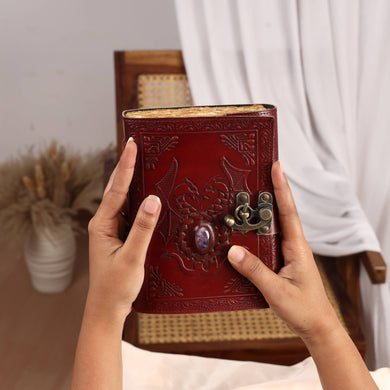 Leather Journal with Stone Dragon Embossed Travel Journal
