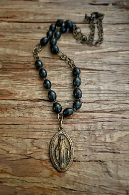 Mary Bronze Black Wood Beaded Bronze Necklace