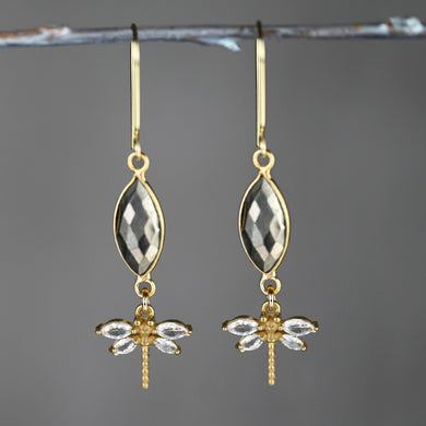 Marquise Semi Precious w/ Vintage Crystal Dragonflies Ear: Crystal