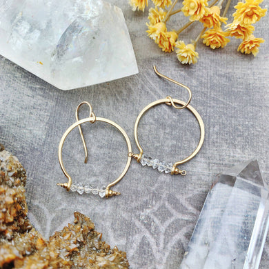 Herkimer Diamond Quartz Hoops 14k Gold Filled Gold Hoop