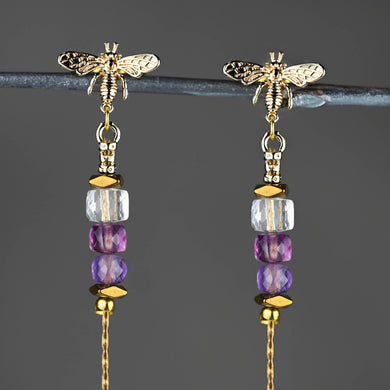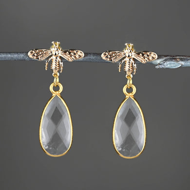 Honey Bee w/ Crystal Quartz Tear Drop Earrings