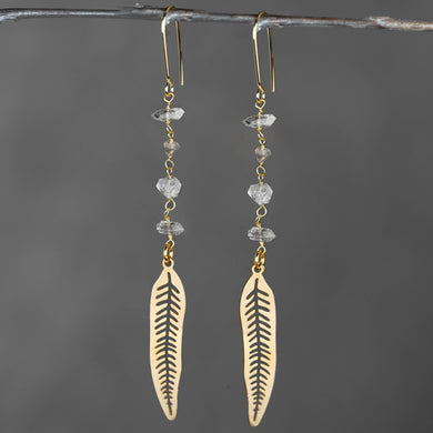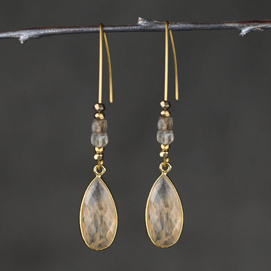 Long Wire Golden Rutile Tear w/ Labradorite Earrings