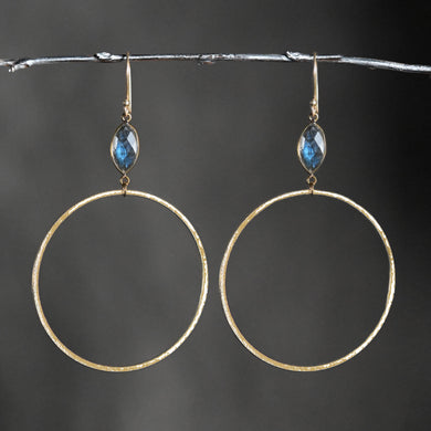 Large Brushed Gold Hoops w/ Semi Precious Gemstones