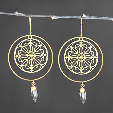 Romantic Filigree Hoops w/ Crystal Quartz Points Earrings