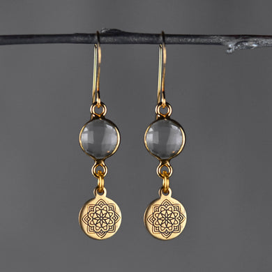 Stamped Blackened Mandala with Round Semi Precious Earrings: Pyrite