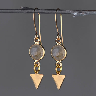 Tiny Brass Hammered Triangles w/ Round Semi Precious Earring