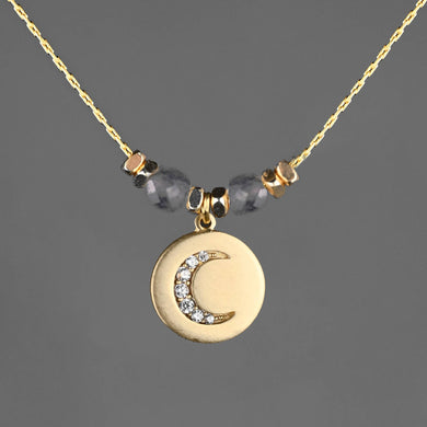 Pave Moon w/ Semi Precious Stones Necklace: 16 + Extender / Iolite