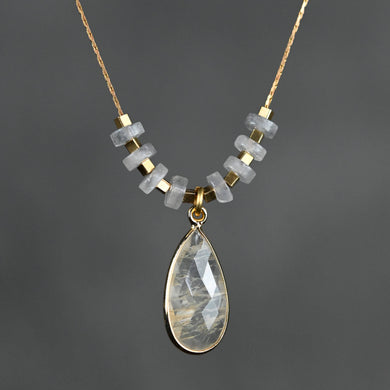 Golden Rutile Large Tear Drop on Delicate Vintage Chain