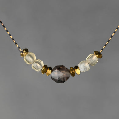 Semi Precious Star Cut and Cube Combo Short Necklace: 16” + Extender / Smoky Quartz & Citrine