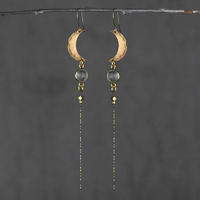 Hammered Moon w/ Semi Precious & Black & Gold Tassel Earring: Lapis