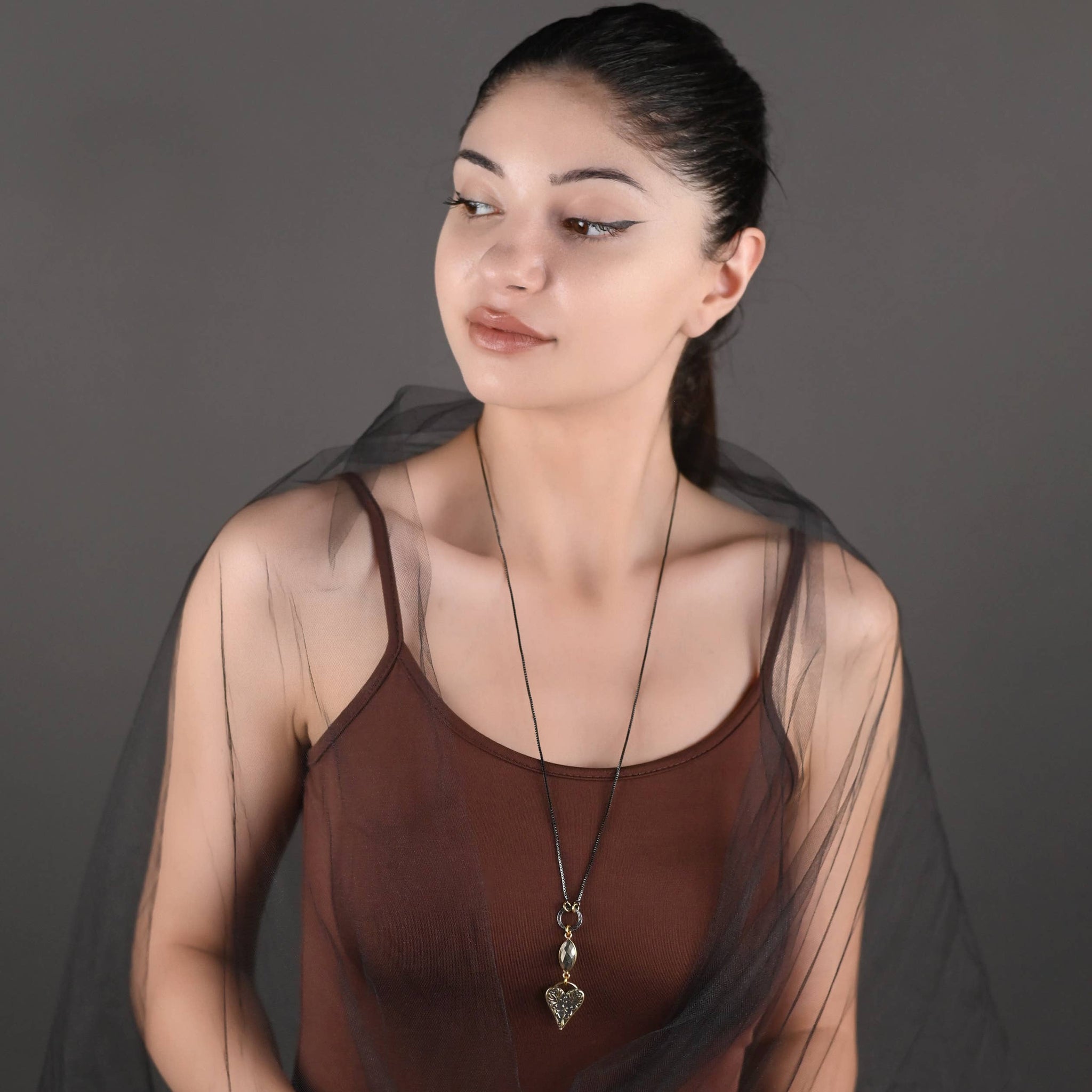 It seams more important now to surround ourselves in love and this is a stunning necklace that features a heart with floral elements cast in brass and it has been antiqued and hand polished for that old world look.