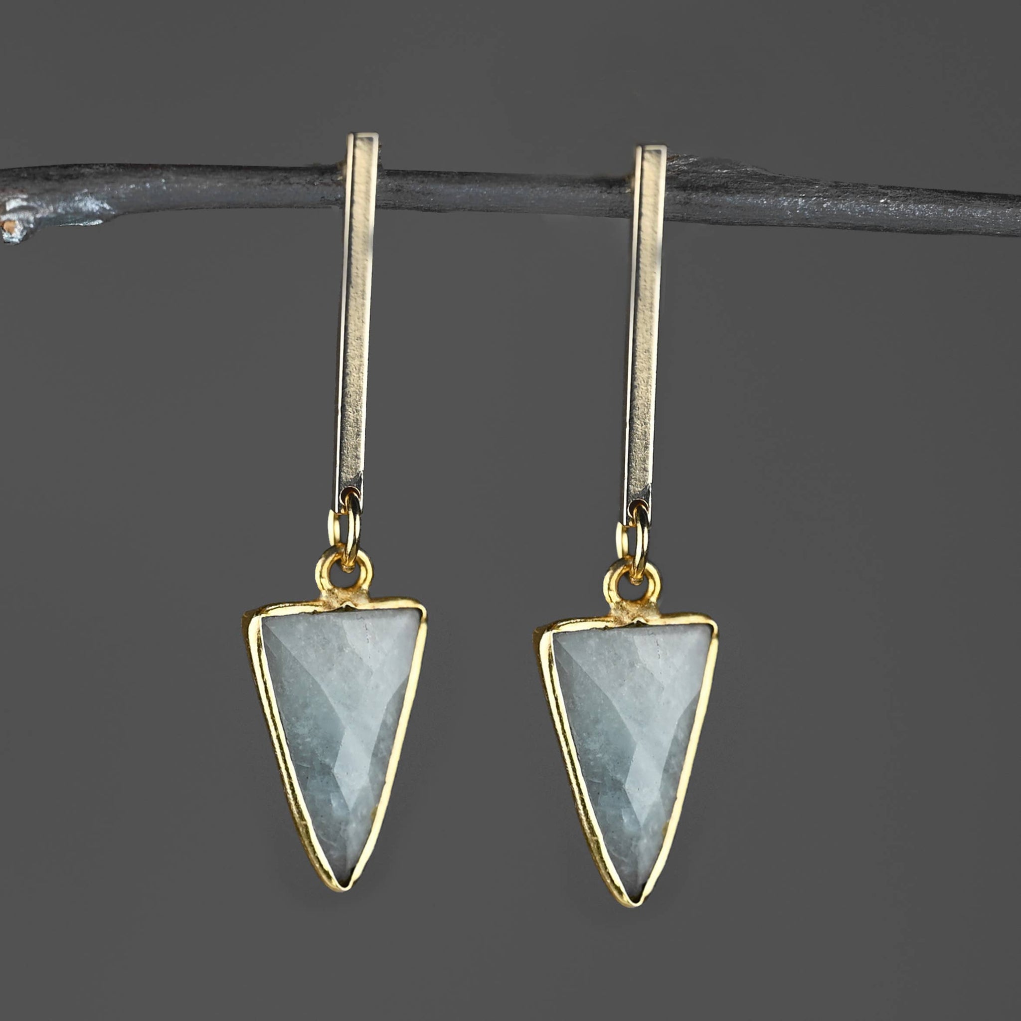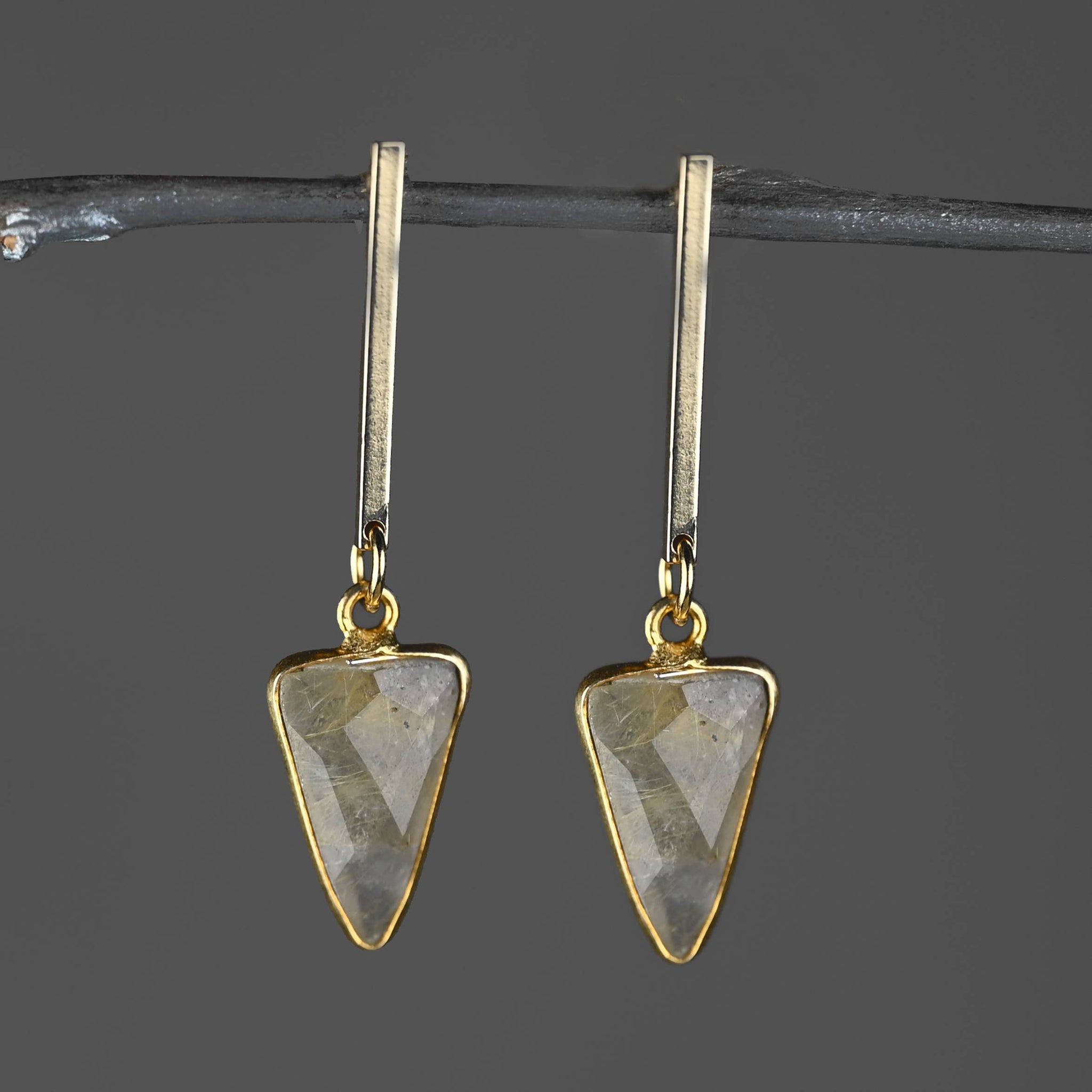 Bar Top Classic Semi Precious Triangle Drop Earrings: Smoky Quartz