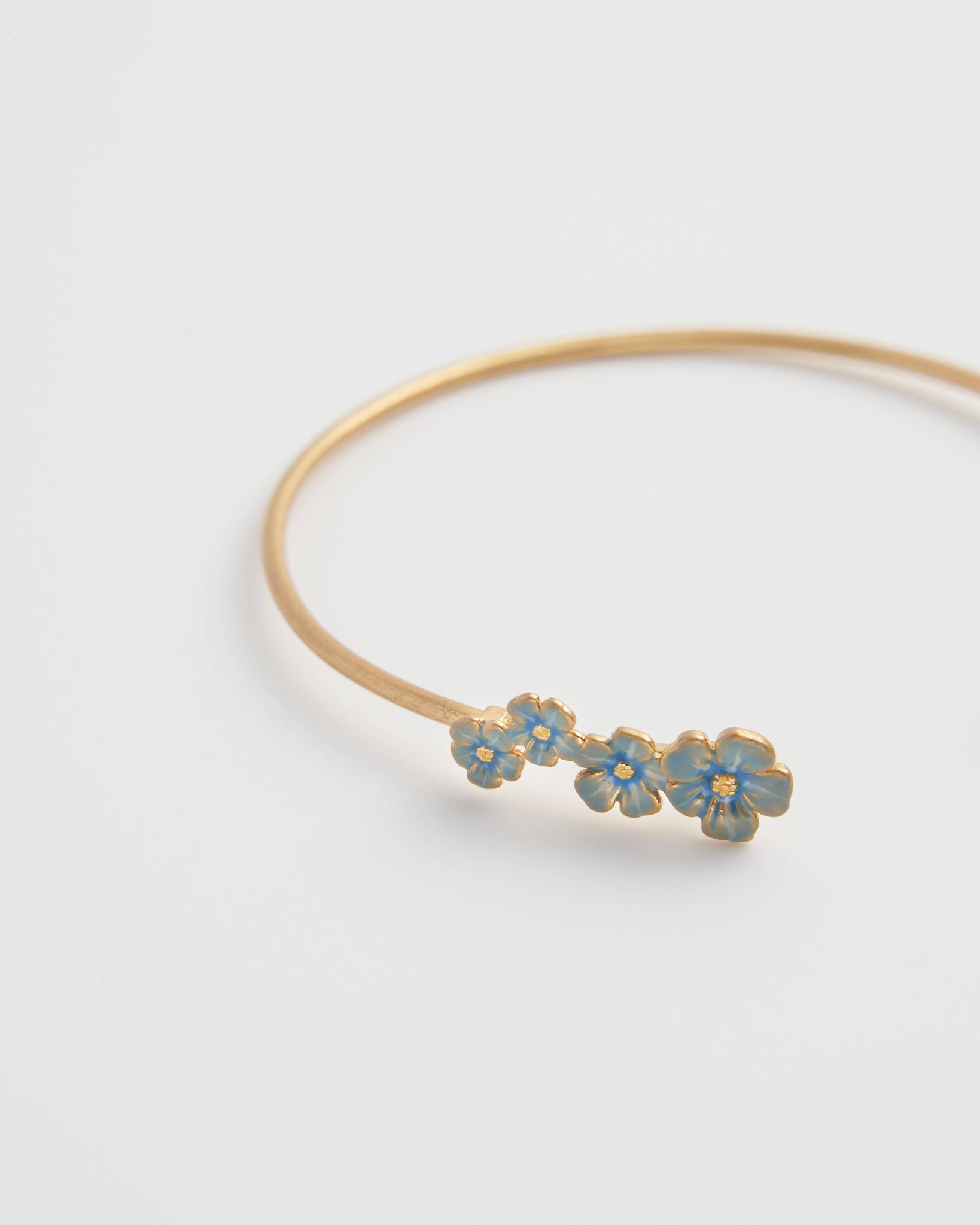 Eternal love blooms on your wrist with the Forget-Me-Not Bangle. This exquisite bangle is more than just a piece of jewelry; it is a timeless testament to your everlasting love. Adorned with delicate forget-me-not flowers—symbolizing faithfulness and enduring affection—each flower is meticulously crafted to showcase vibrant colors and intricate textures that capture the eye and the heart. Beyond its beauty, this bangle is part of a coordinating set, allowing you to display them together as a harmonious tribute in your store.