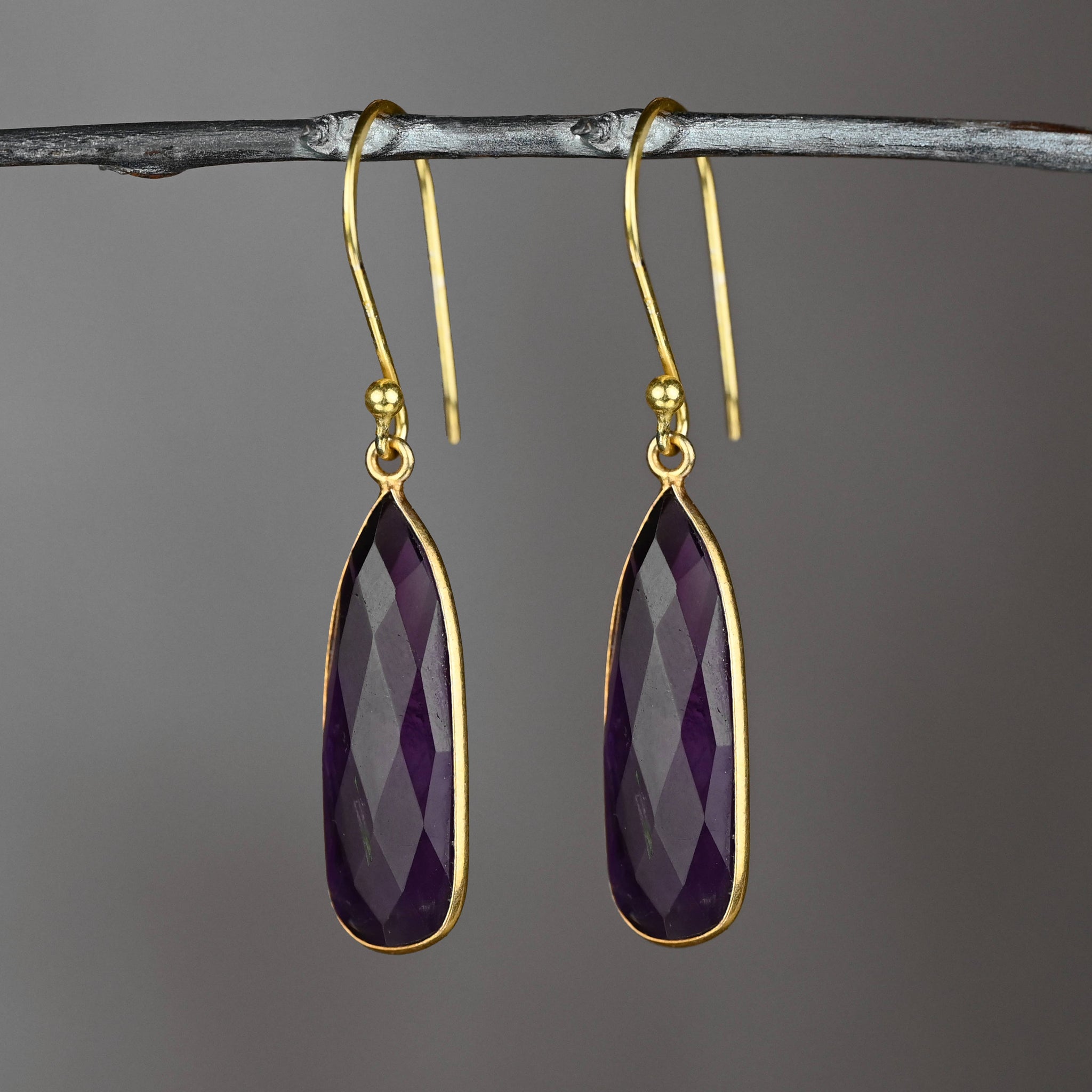 This is a stunning earring with a beautiful elongated semi precious tear drop. The perfect size to make a statement on its own.