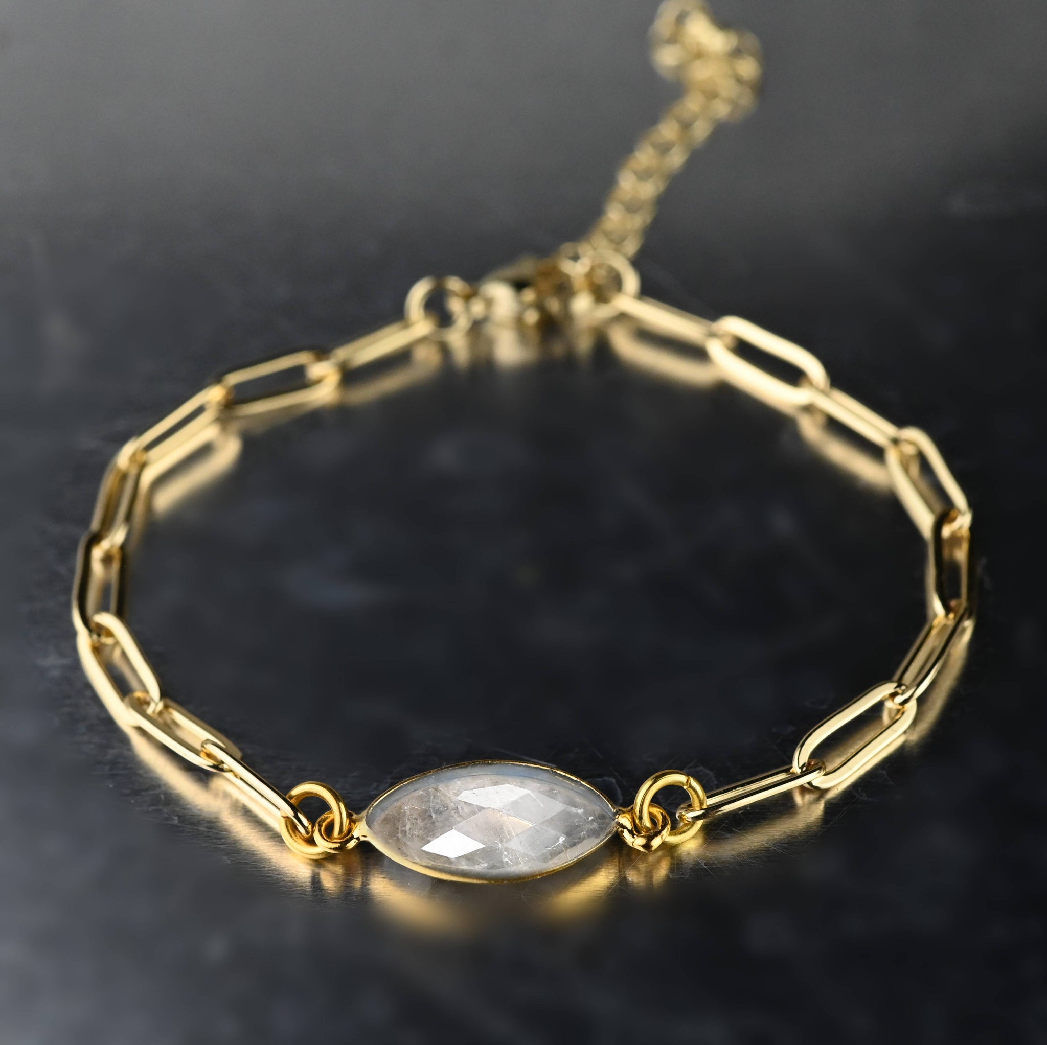 This is a great little bracelet featuring gold plated Paper Clip Chain & a beautiful Semi Precious Gemstone.